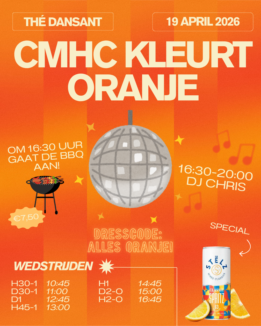 Het feest is van 20:30 tot 00:30. Alle seniorenleden zijn van harte welkom inclusief introducés (18+)! 🥳