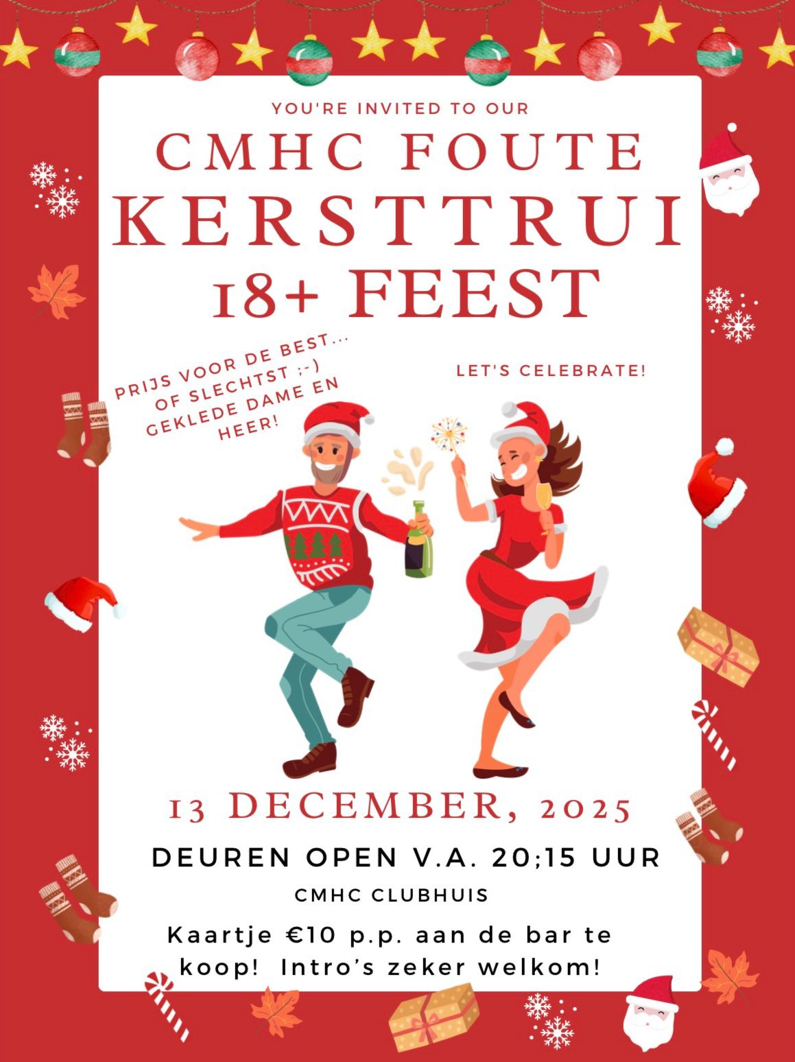 Het feest is van 20:30 tot 00:30. Alle seniorenleden zijn van harte welkom inclusief introducés (18+)! 🥳